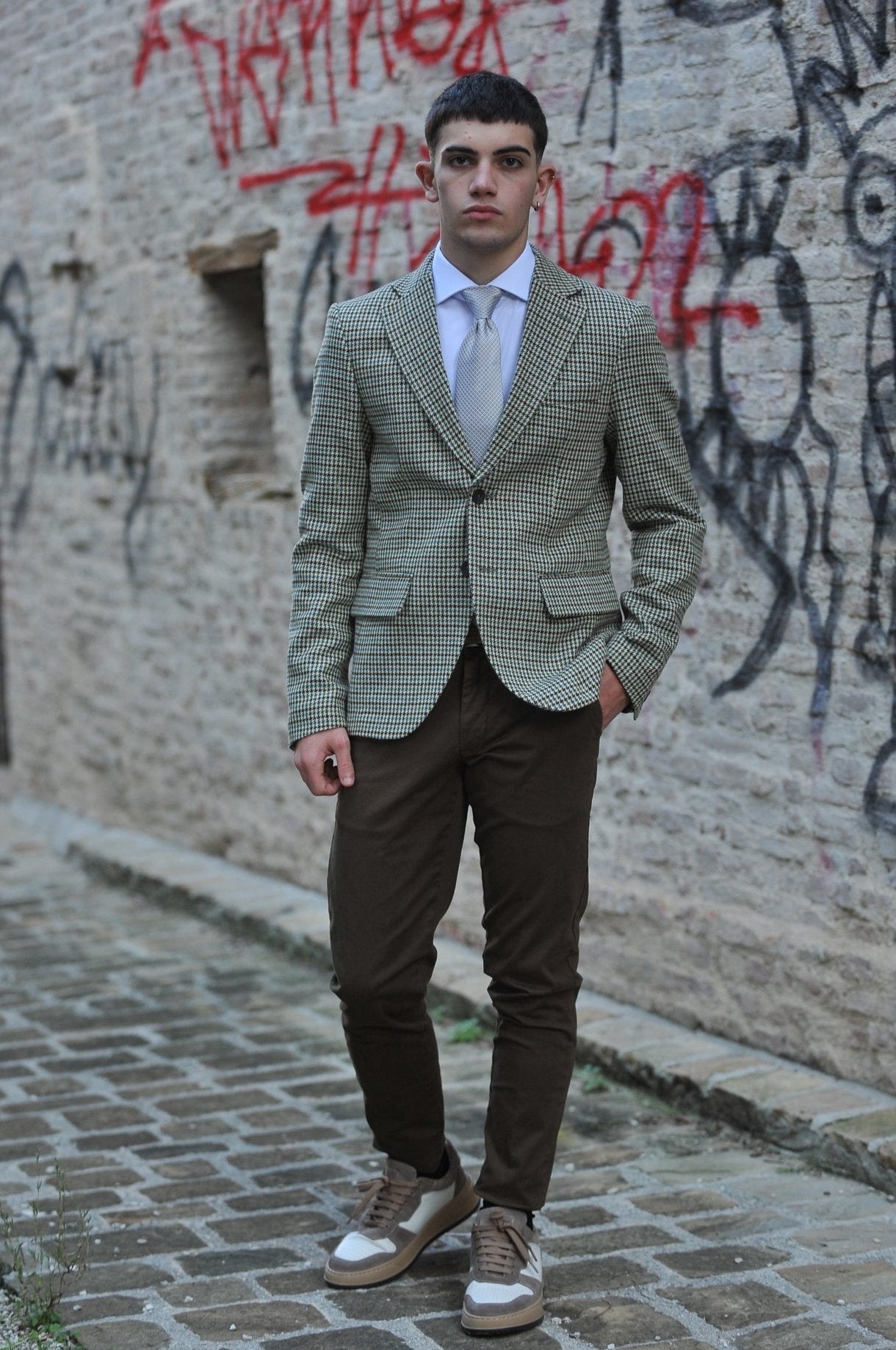 Tutti i nostri abiti, giacche, pantaloni, capospalla e camicie sono prodotti sartorialmente in Italia da laboratori selezionati con tessuti e filati Italiani